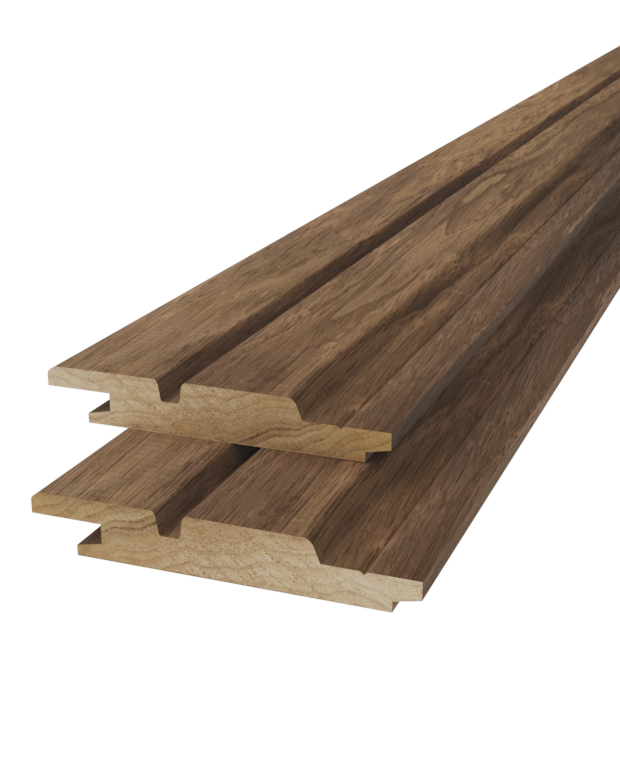 Het dubbele rhombusprofiel combineert een gesloten, overlappend ontwerp met de uitstraling van een open rombus gevelbekleding. Dit profiel voegt een stijlvolle dimensie toe aan gevels en wanden, en kan discreet worden bevestigd door middel van verdekte schroeven in de groef. Met een fijnbezaagde zichtzijde biedt de dubbele rhombus plank een ideale hechting voor verfsystemen op het houtoppervlak.